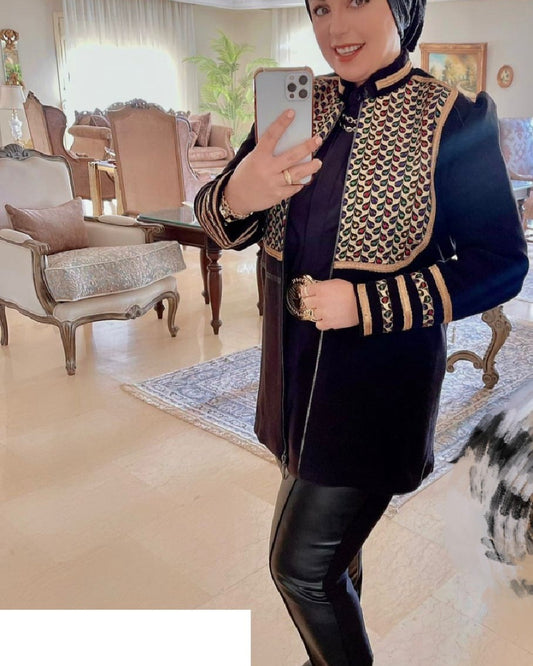 جاكيت صوف مبطن ستان مطرز خيوط 0143