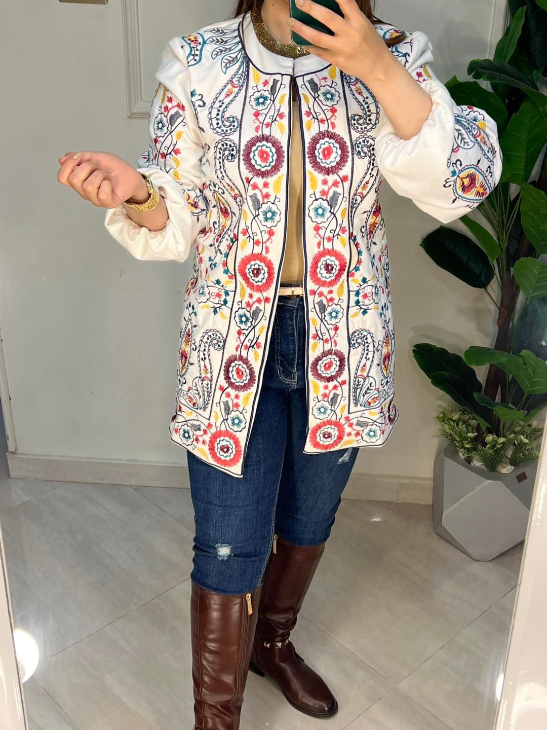جاكيت شمواه مبطن ستان مطرز خيوط 0125