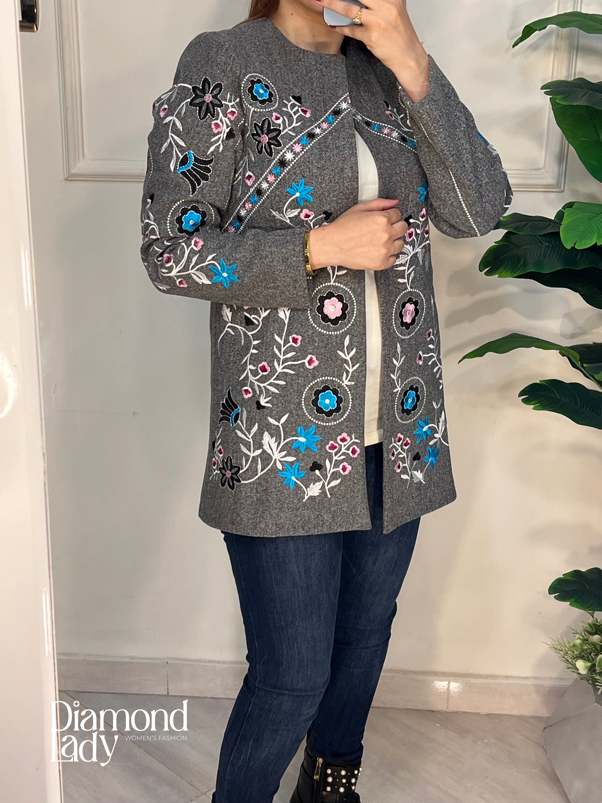 جاكيت صوف مبطن ستان مطرز خيوط 0101