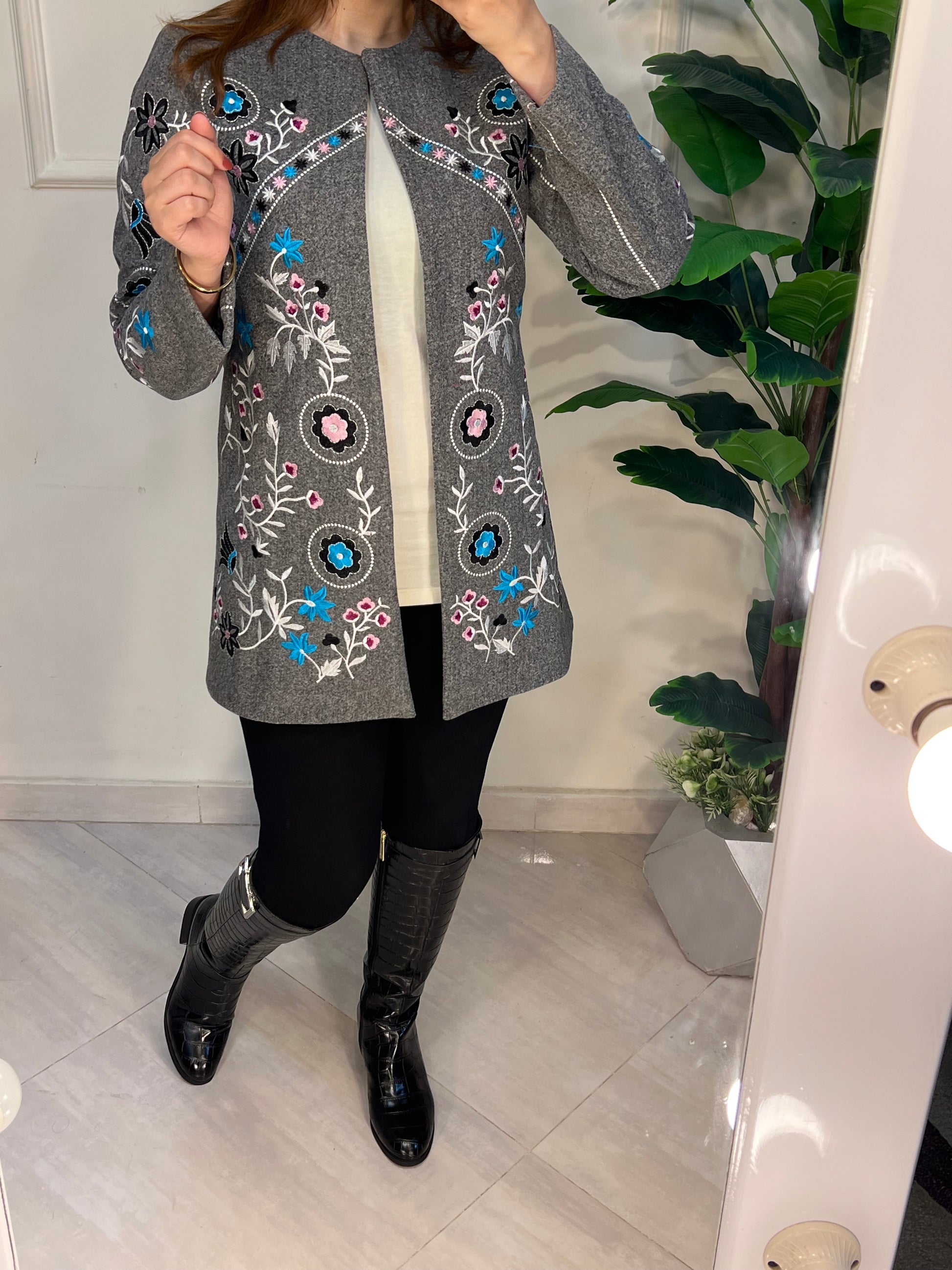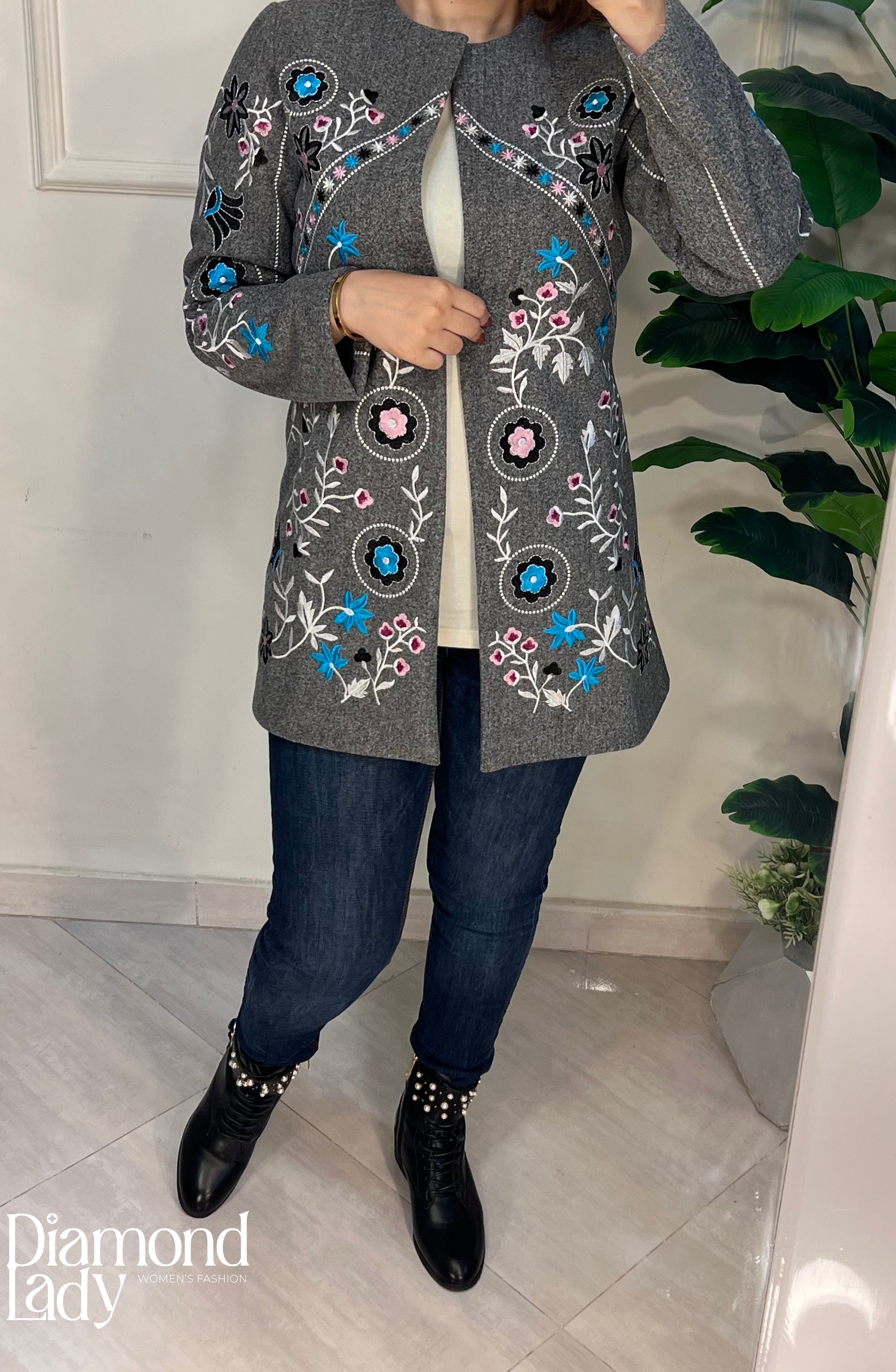 جاكيت صوف مبطن ستان  مطرز خيوط