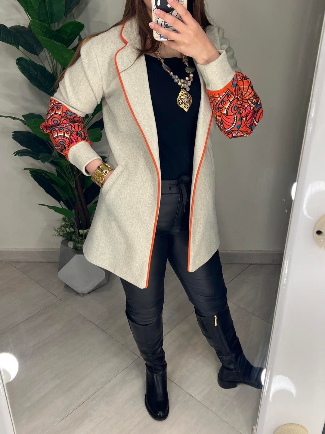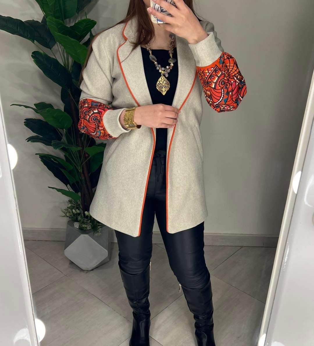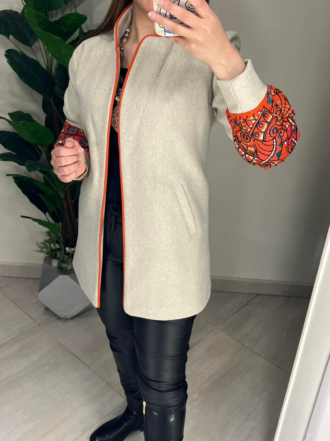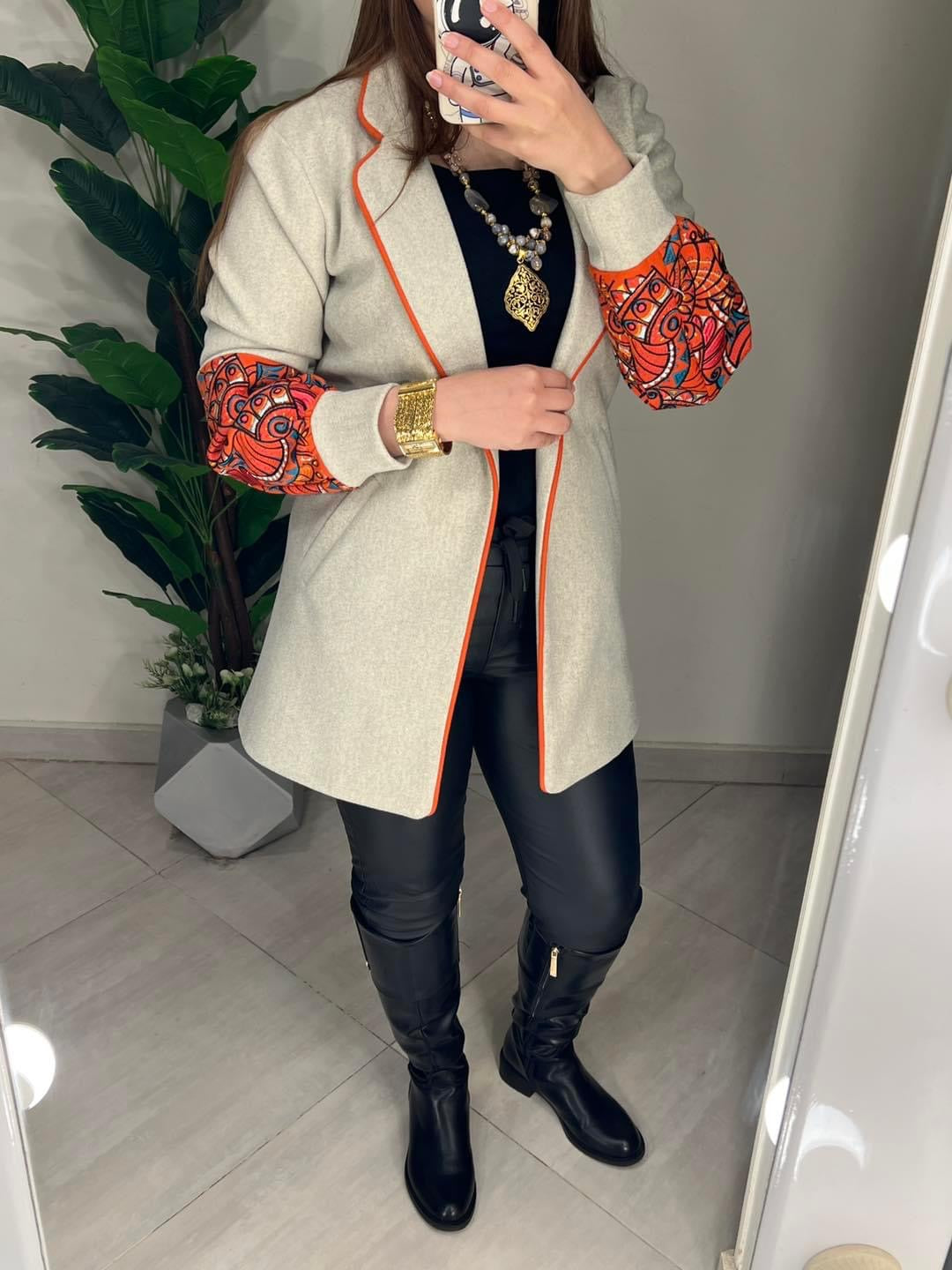 جاكيت صوف مطرز خيوط مبطن ستان 0197
